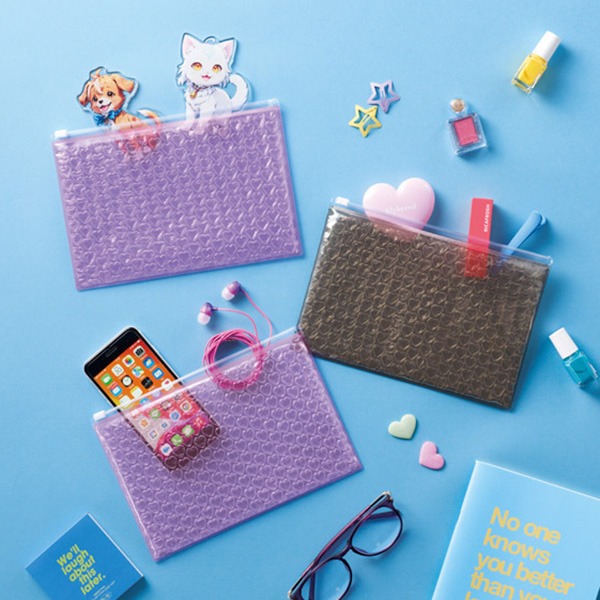 代表的なのが、クッション入りのアクスタポーチや、中身が見えるメッシュポケット付きクリアポーチタイプの収納アイテムです。