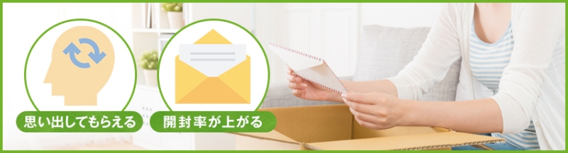 DMにノベルティを同封すると、直接会えなくても、顧客に企業のことを思い出してもらえる効果があります。また、DMだけでは中身を見ずに捨てられてしまう可能性がありますが、ノベルティを同封することでDMの開封率を上げられる点も、期待できる効果の1つです。
