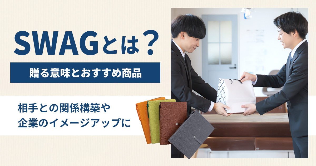 企業が顧客や取引先、従業員などに贈るギフトを「SWAG」といいます。SWAGには企業名やロゴを印刷したオリジナルグッズを選ぶことが多いでしょう。SWAGによって、企業のイメージアップを図れたり、受け取った人との関係を深めたりできます。