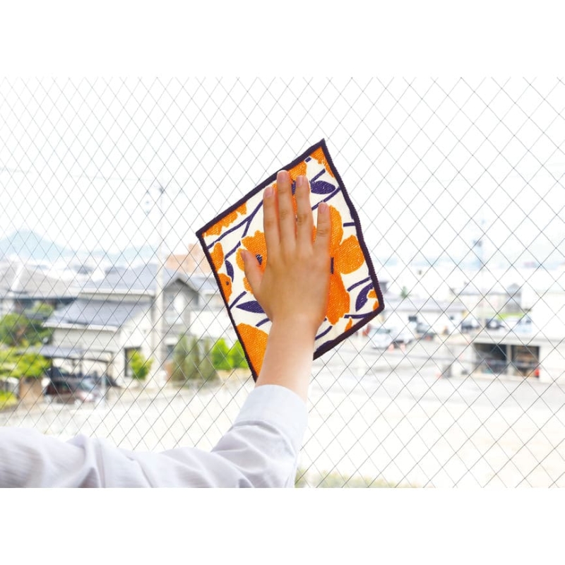 とてもカラフルな大柄の北欧風フラワープリントがお洒落。様々な場所のお掃除にフレキシブルに使えるクロスです。素材にはリサイクルPETを100%使ったエコ度の高さも魅力。