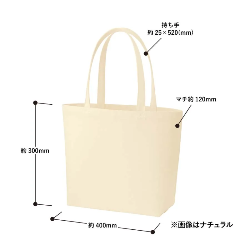 A4サイズが横に入るサイズ感の厚みあるコットン生地のトートバッグです。使い勝手のいいサイズと丸みを帯びた横型フォルムのデザインが人気を呼んでいます。カジュアルトートとしても、ノベルティトートとしても幅広い用途としてご利用いただけます。印刷方法も単色からフルカラー印刷まで対応しており、お好みのデザインでオリジナルトートバッグを作成出来ます。