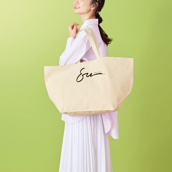しっかりとした厚みが上質な印象を与える10オンス生地を使用した、利便性の高い大きめサイズのトートバッグ。横幅のあるワイドサイズで出し入れしやすく、シンプルなオフホワイトカラーなのでノベルティとしての名入れ効果も抜群です。