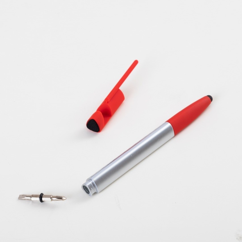 ボールペン・タッチペン・スケール・クリーナー・ドライバー・スマホスタンドの6機能をオールインワン。