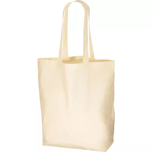シーチング生地と比較して中身が透けにくく、厚手な低価格コットンバッグです。