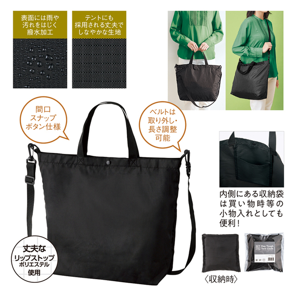 デイタフ・テントクロス パッカブル2WAYトート(撥水加工)(ブラック)