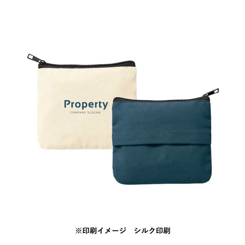 一般的なサイズのティッシュはもちろん、リップや鍵などの小物も入るファスナー付のポーチとなっております。ティッシュが取り出しやすいよう、しなやかなライトキャンバスの生地を使用しており、表面と裏面で生地色の異なるバイカラー仕様などデザインにもこだわった商品です。ネイビー、ナイトブラック、チャコールグレーの3カラー展開となっております。お店のオープン記念品やキャラクターグッズにおすすめの商品です。