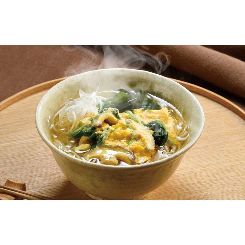 お湯をかけるだけの簡単調理。特殊なフリーズドライ製法で作られた麺は、茹でたて同様のコシが楽しめます。簡単安全調理の細くてつるつるの麺はお子さまやお年寄りの方も食べやすい仕上がりです。