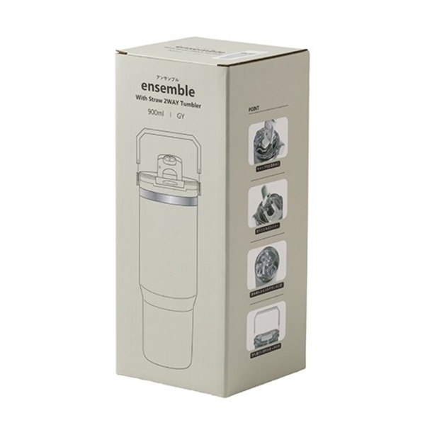 ストロー付き2WAYタンブラー(900ml)(グレー)