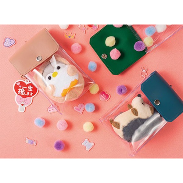 フラップは全5カラー、クリアボディで“ぬい”もグッズも映えるPVCポーチ。