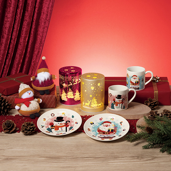 クリスマスを演出してくれる、スノーマンとサンタが描かれたかわいい食器。