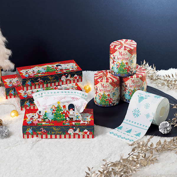夢いっぱいのクリスマスになりますように!クリスマスデザインのボックスティッシュです。