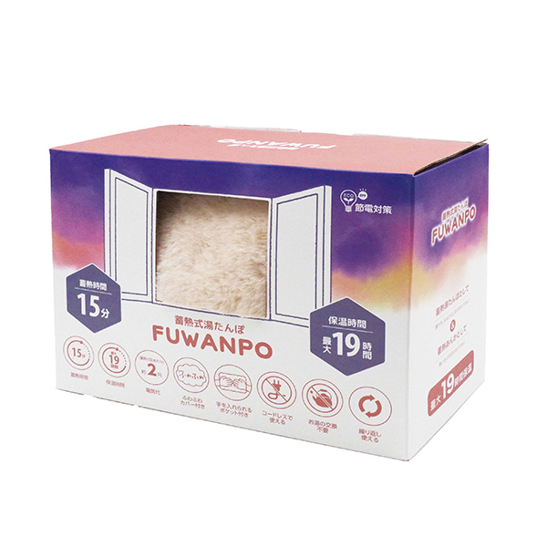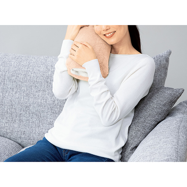 お湯不要の蓄熱式湯たんぽ。両手を入れることができるふわふわカバー付きの湯たんぽです。