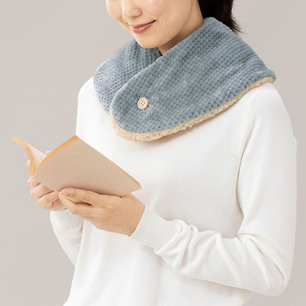 首から肩にかけてあたたかいネックウォーマー。おうち時間や就寝前におすすめです。