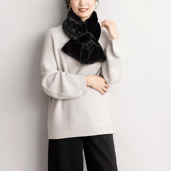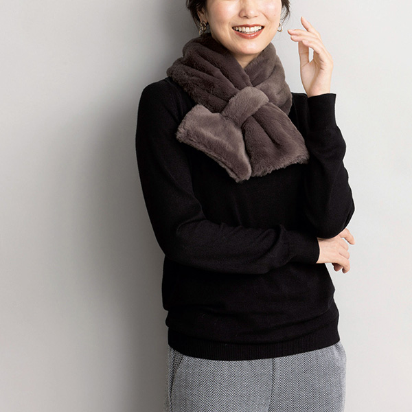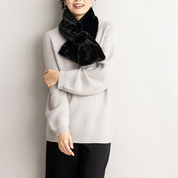 輪に通すだけでキレイに整うふんわりあたたかいボリューミーなファーマフラーです。
