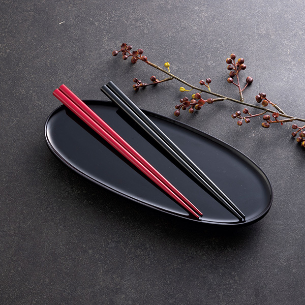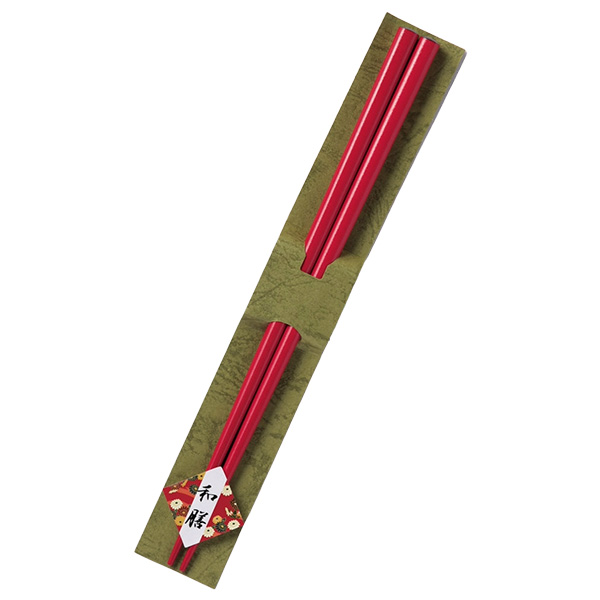赤のシンプルな塗り箸です。箔押し名入れもできるので、ノベルティや記念品におすすめです。