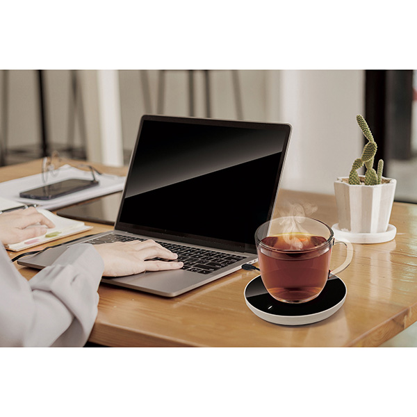 温かい飲み物の温度をキープしてくれるコースター。カップを置くとスイッチが入り保温機能が作動します。