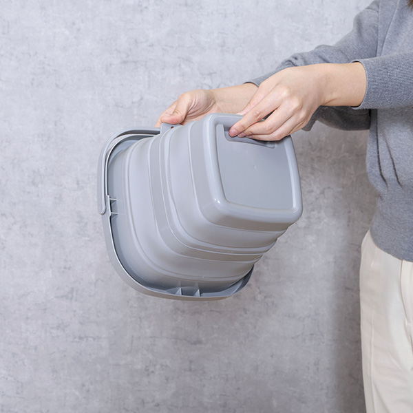 場所を取らずに収納できる5L容量の折りたたみバケツ。