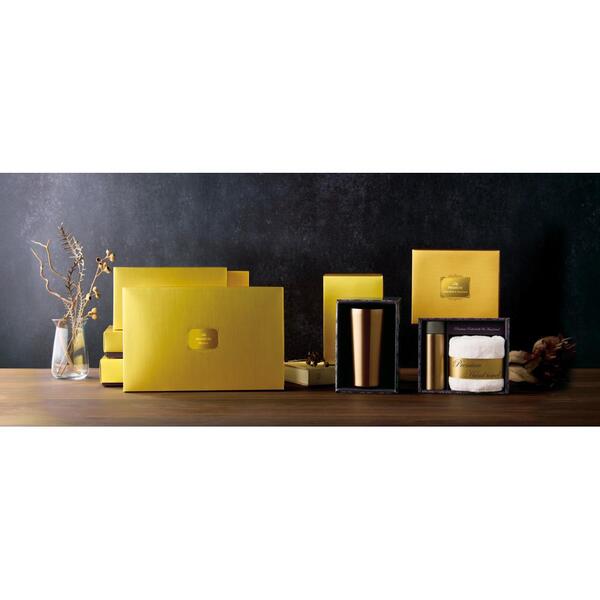 ハンドタオルにはゴールドの帯を巻いて、箱を開けた時の驚きまでもプレミアム。贈答品に最適な身蓋式の化粧箱がその価値をさらに高めます。