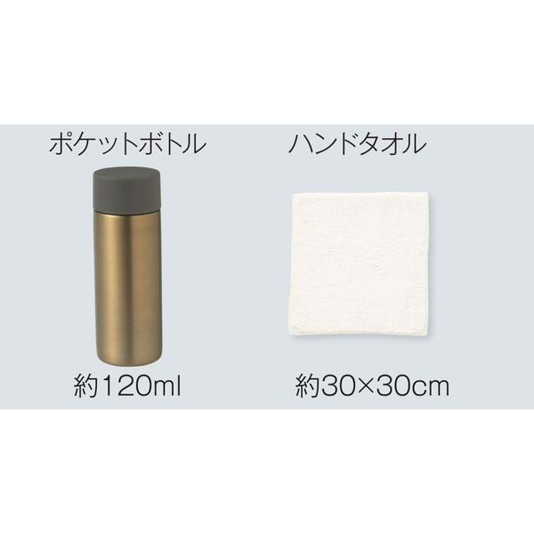 サイズ | ポケットボトル:直径4.5cm 高さ13.2cm ハンドタオル:約30×30cm |