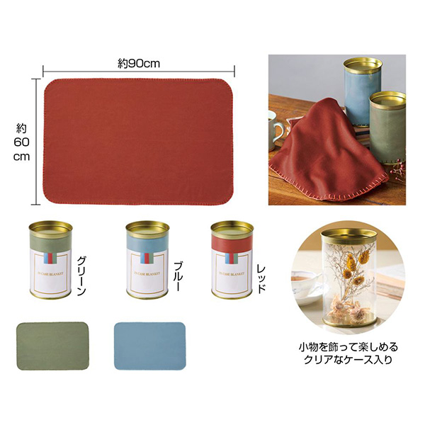 店頭ディスプレイにうってつけ!是非積み上げて展示してほしいクリアボトル入りのブランケットです。