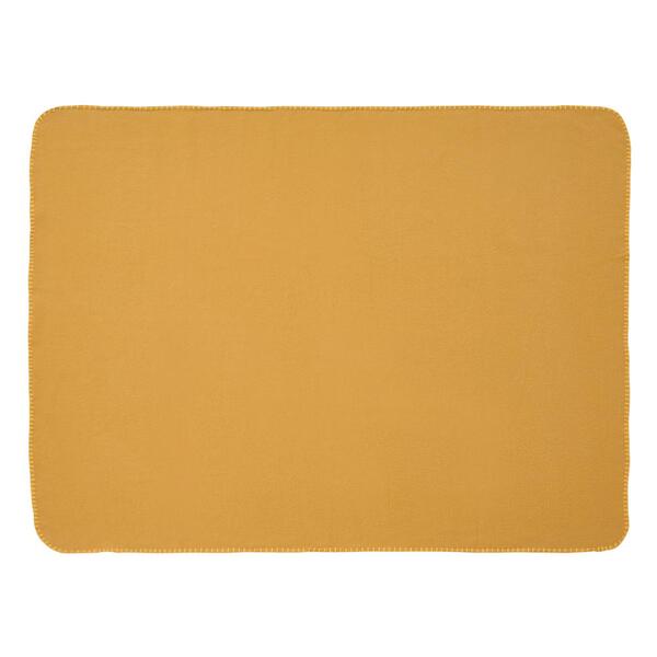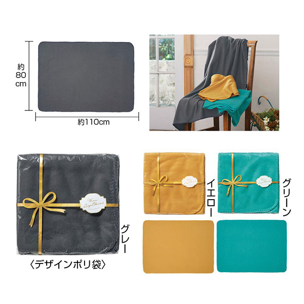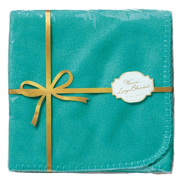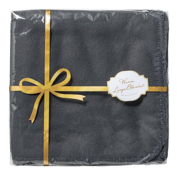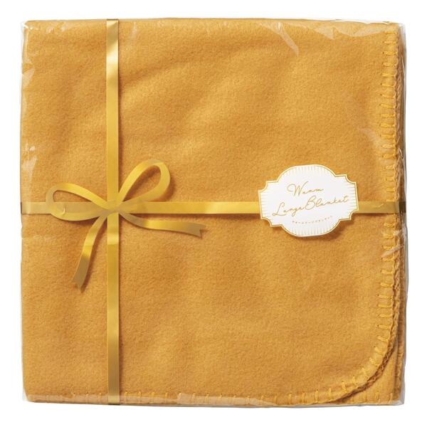 ゴールドのリボンでラッピングしたかのようなパッケージがポイント。ちょっと大きめのフリースブランケットです。