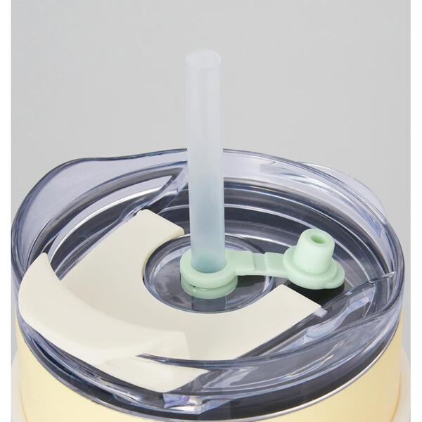 氷を気にせずゴクゴク飲めるストロー付き。ストロー用の穴をふさげるキャップも本体に付属しています。