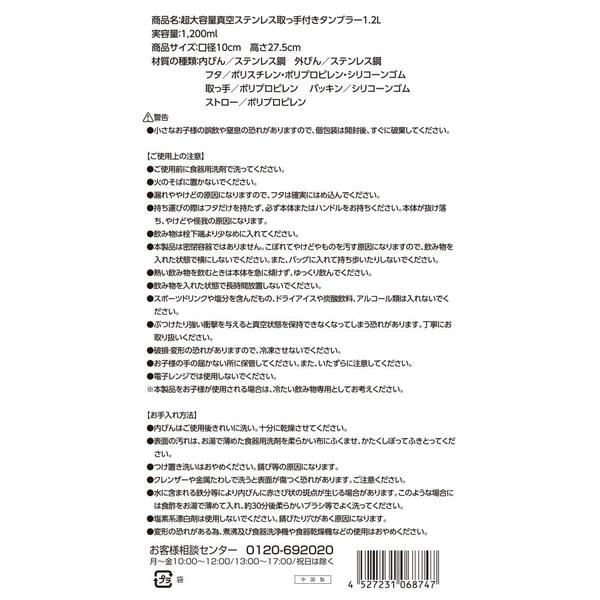 【先行掲載】超大容量真空ステンレス取っ手付きタンブラー1.2L