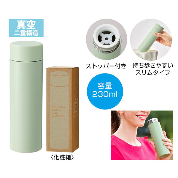 ストッパー付き真空ステンレスボトル230ml(グリーン)