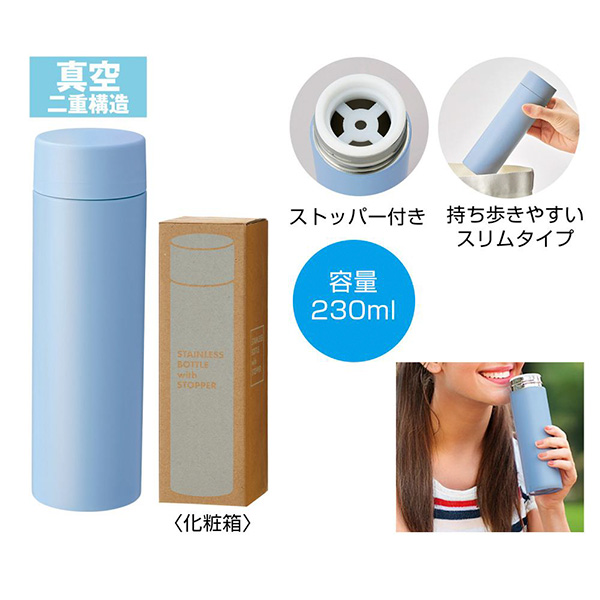 ストッパー付き真空ステンレスボトル230ml(ブルー)