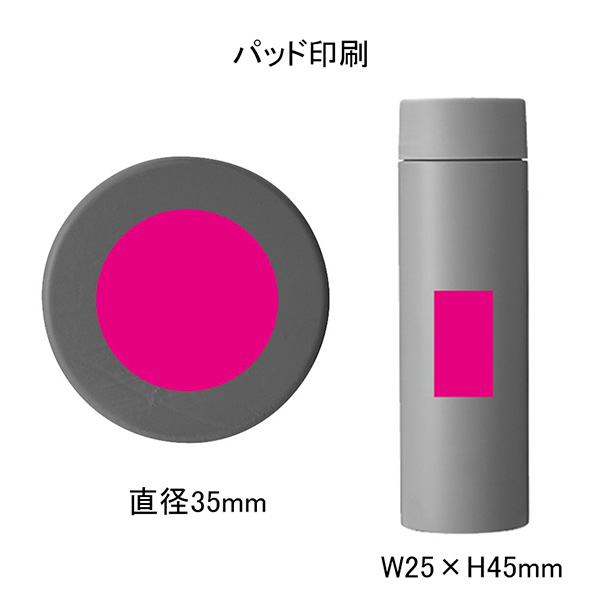 印刷・範囲 | パッド印刷:直径35mmまたはW25×H45mm 回転シルク印刷:W165×H130mm レーザー:W25×H45mm インクジェット印刷:直径35mm |