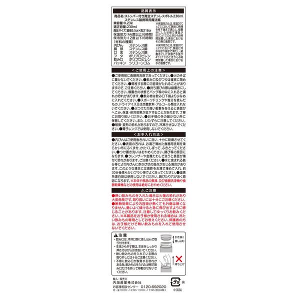 ストッパー付き真空ステンレスボトル230ml(オフホワイト)