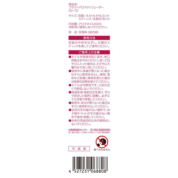 | サイズ | ガラス瓶:4.4×4.4×6.3cm スティック:全長約18cm |