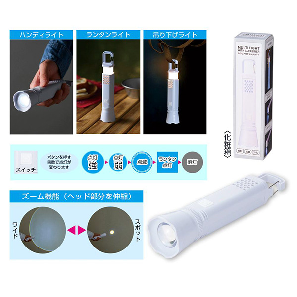 ワイド/スポット/点滅OK!手持ちも吊り下げもできるスリムなマルチライト。