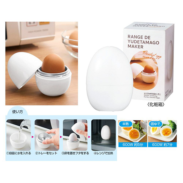 半熟なら600Wで約5分、固ゆでなら600Wで約7分でできあがり!朝食やお弁当作りに活躍します。