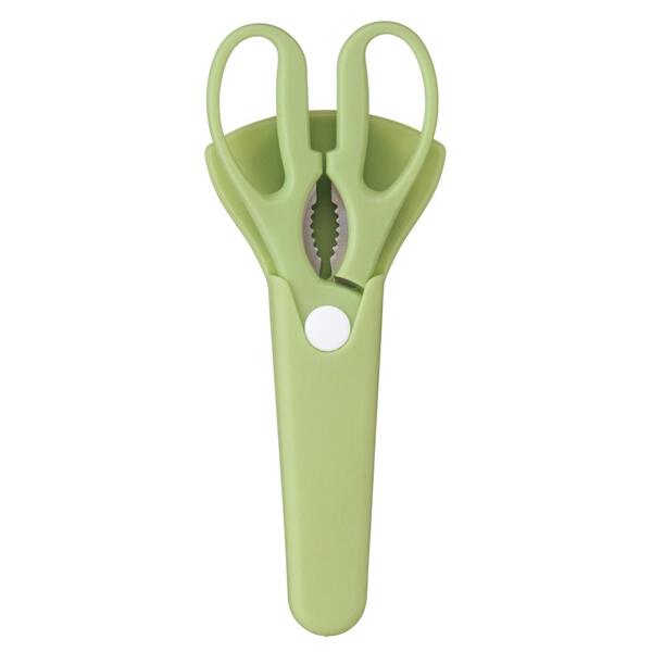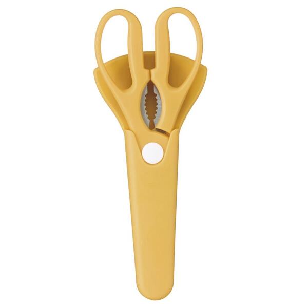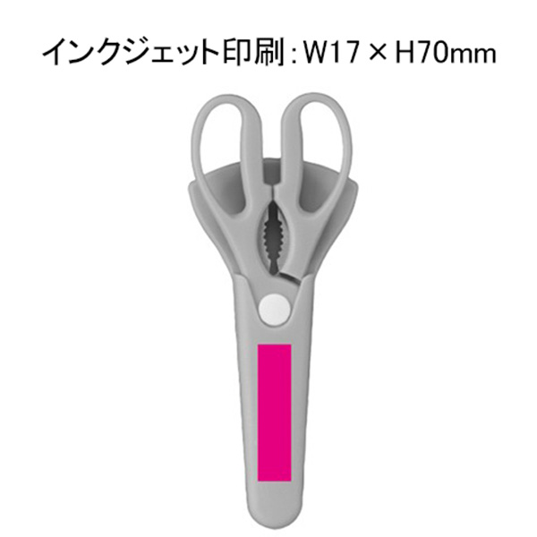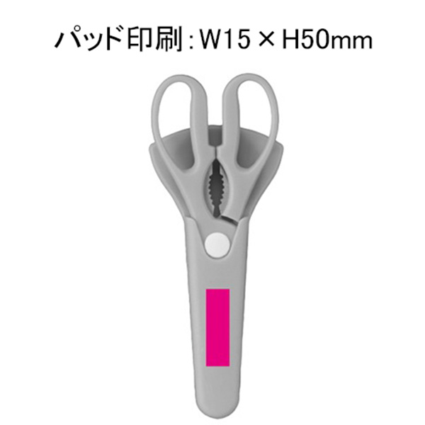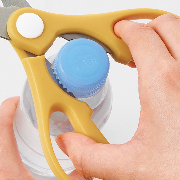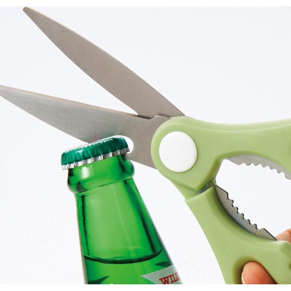 通常のハサミの他、栓抜き、ペットボトルオープナーの機能付き。