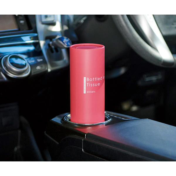 スタイリッシュなボトルティッシュケース、車のドリンクホルダーにぴったりで省スペース。