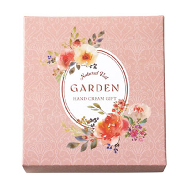 ナチュラル感のある香りのハンドクリームと、エレガント模様のハンカチタオルのセットです。