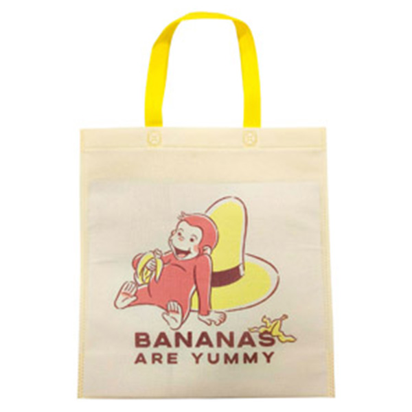 かわいらしい「おさるのジョージ」が印刷された不織布のトートバッグです。