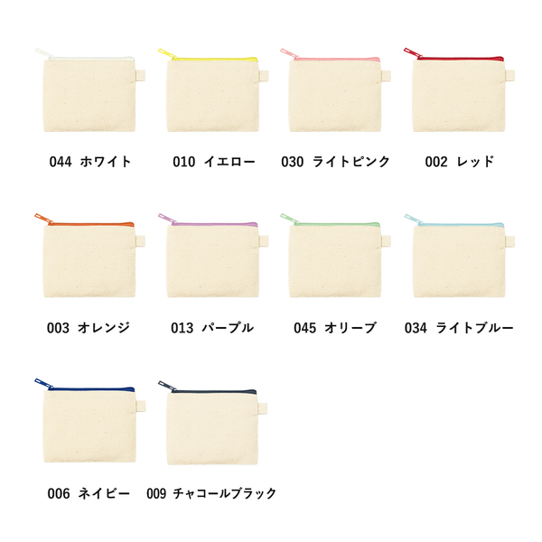 ファスナー部分はカラフルな10色展開ながら、ボディはシンプルなナチュラルカラーのためデザインを選ばずご使用いただけます。