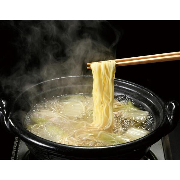 そのまま鍋に入れて煮込める新配合の中華麺です。スープ付きなので通常のラーメンとしても召し上がれます。