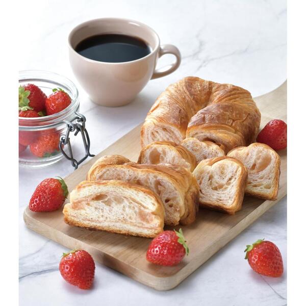 81層に織り上げた生地を1本1本三つ編みにする製法で焼き上げたいちご風味のデニッシュです。