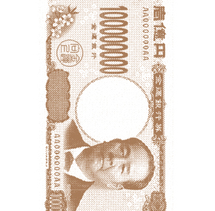 肖像が渋沢栄一の壱億円札(笑)のトイレットペーパーです。ロールには壱億円札をずらりと印刷しています。