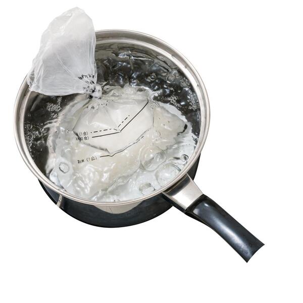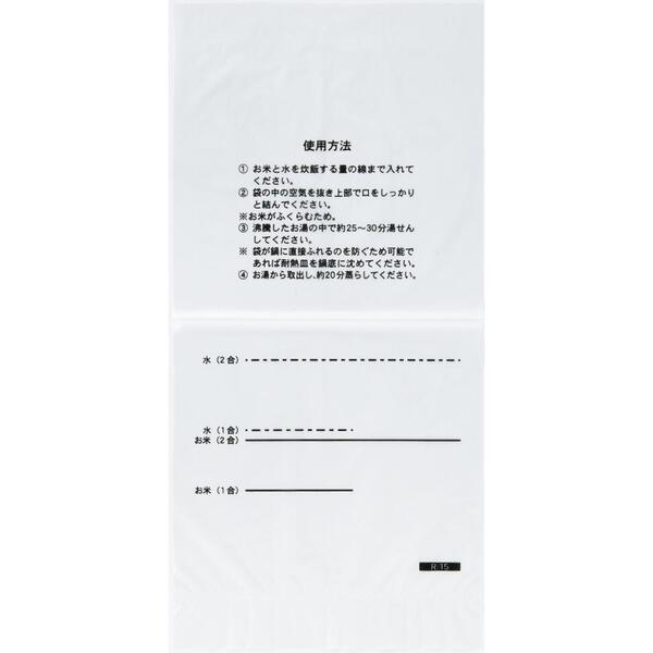 袋本体にお米と水の量の目安線が印刷されています。高密度ポリエチレン製。