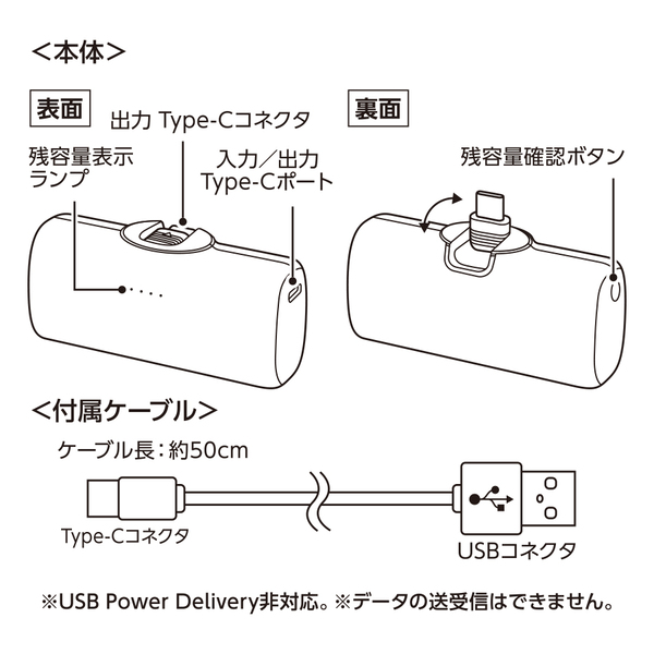 | 備考 | 最大出力2.4A バッテリー容量4000mAh 本体重量約92g <付属品> 取説付、Type-Cケーブル付属 |