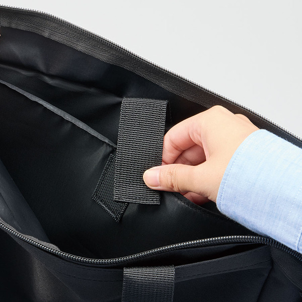 またファスナー付きで、バッグ内の目隠しや雨の侵入を防止することもできます。