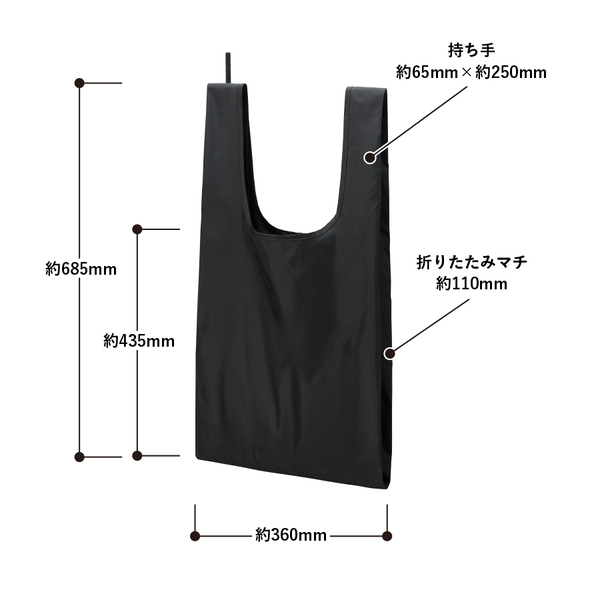 | サイズ | 本体/約W360×H435(持ち手含む685)mm、持ち手/約W65×H250mm、折りたたみマチ/約110mm |