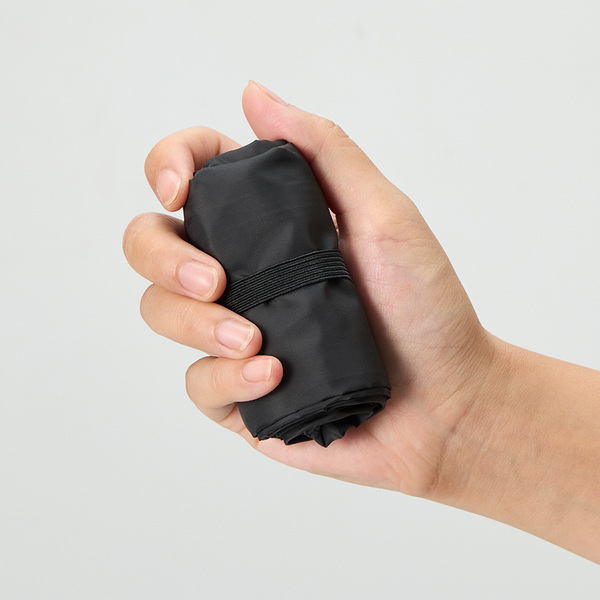 超薄手・超軽量かつ、ハンドル部分のゴムで止めていただくことで極小サイズになり、