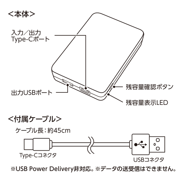 | 備考 | 最大出力2.1A バッテリー容量4000mAh 本体重量102g <付属品> 取説付 Type-Cケーブル付属 残量表示ランプ付 |