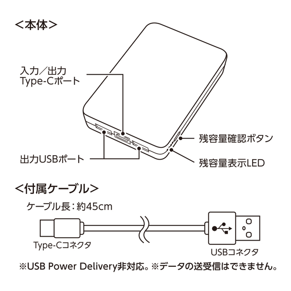 | 備考 | 最大出力2.1A バッテリー容量8000mAh 本体重量172g <付属品> 取説付 Type-Cケーブル付属 残量表示ランプ付 |