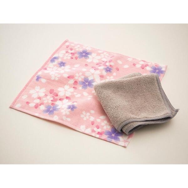 華やかなさくら柄のガーゼタオルと、水だけで汚れが落とせるマイクロファイバークロスのセット。
